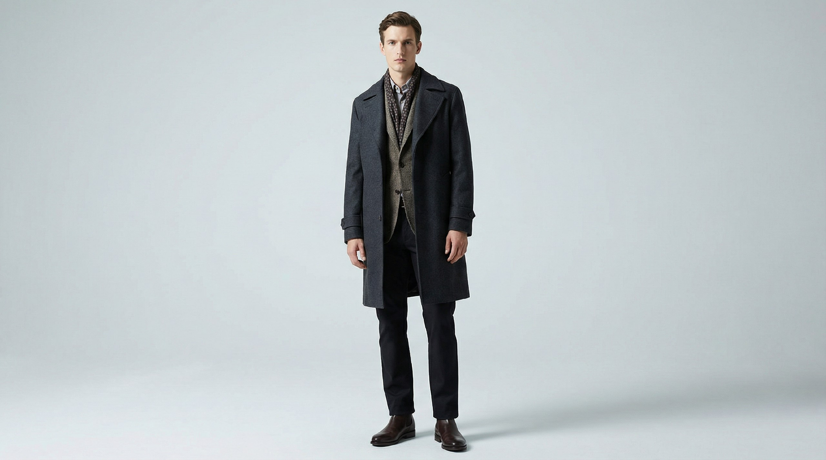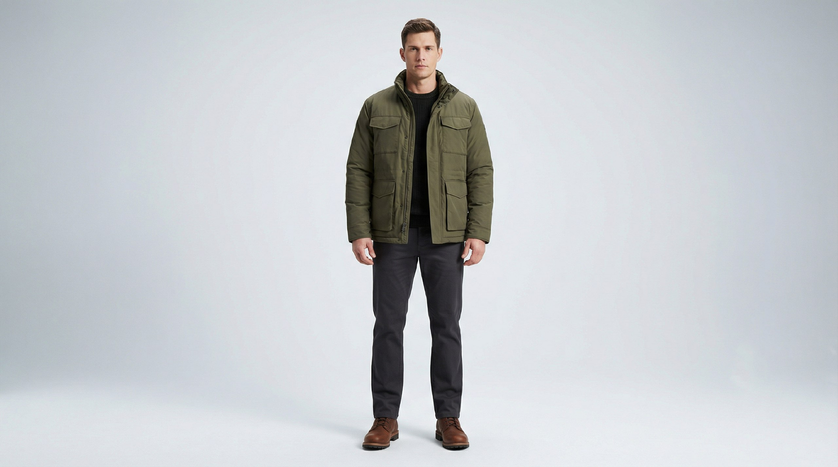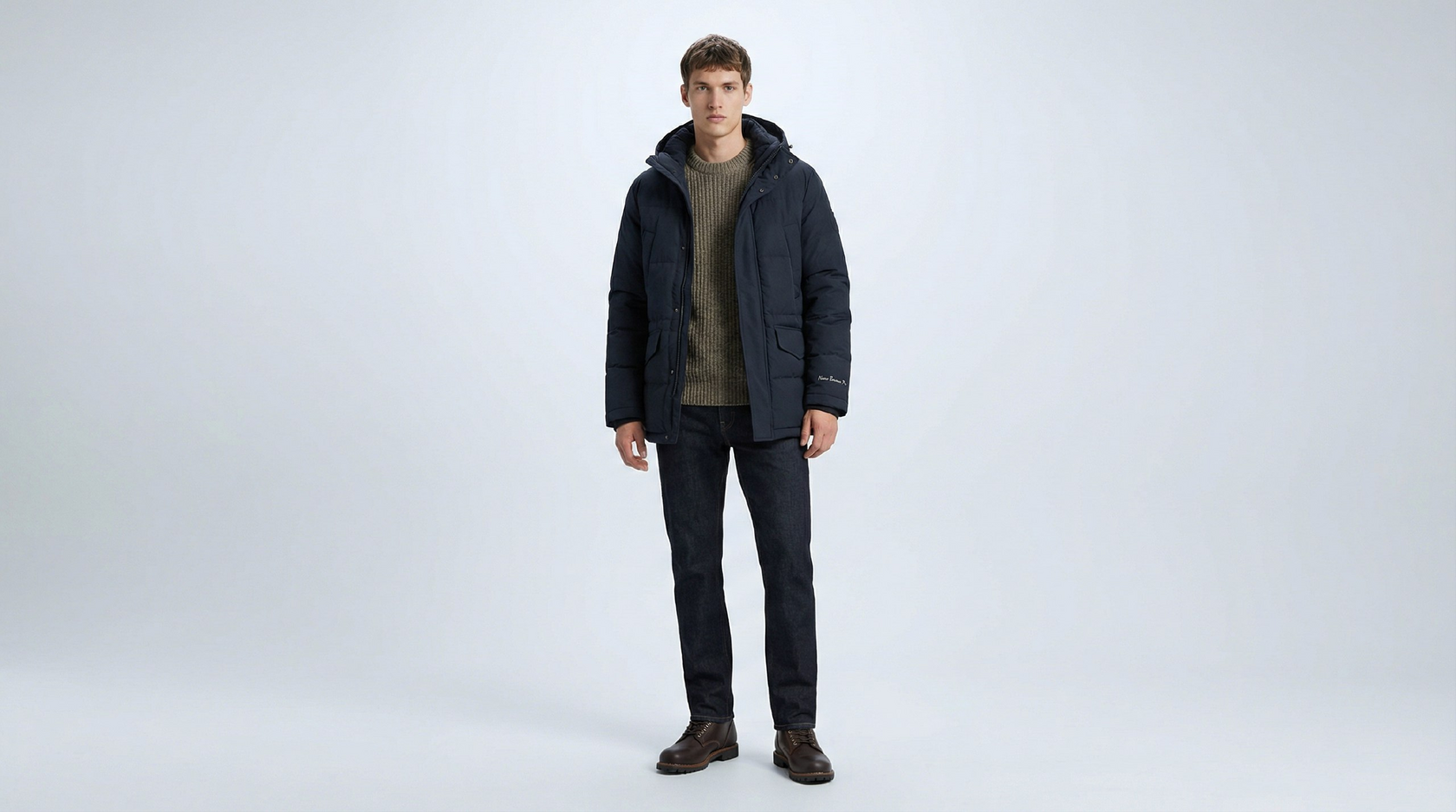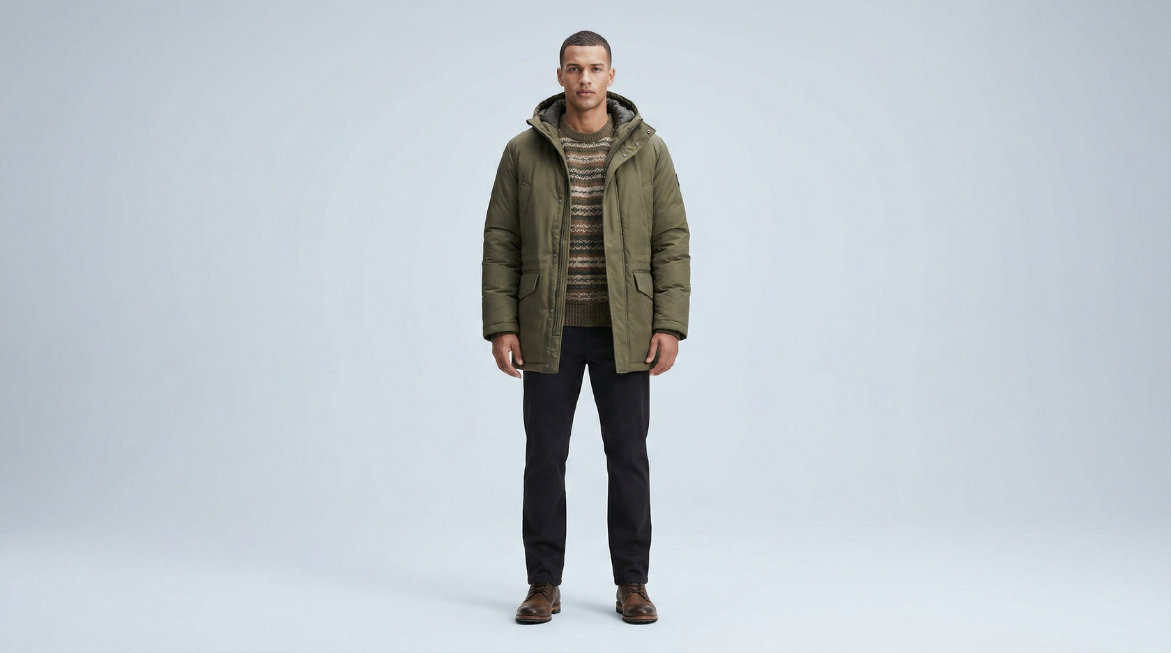 Поэтому в центре мужского гардероба остаются куртки, пуховики и утеплённые пальто, но сами образы становятся визуально легче и аккуратнее.